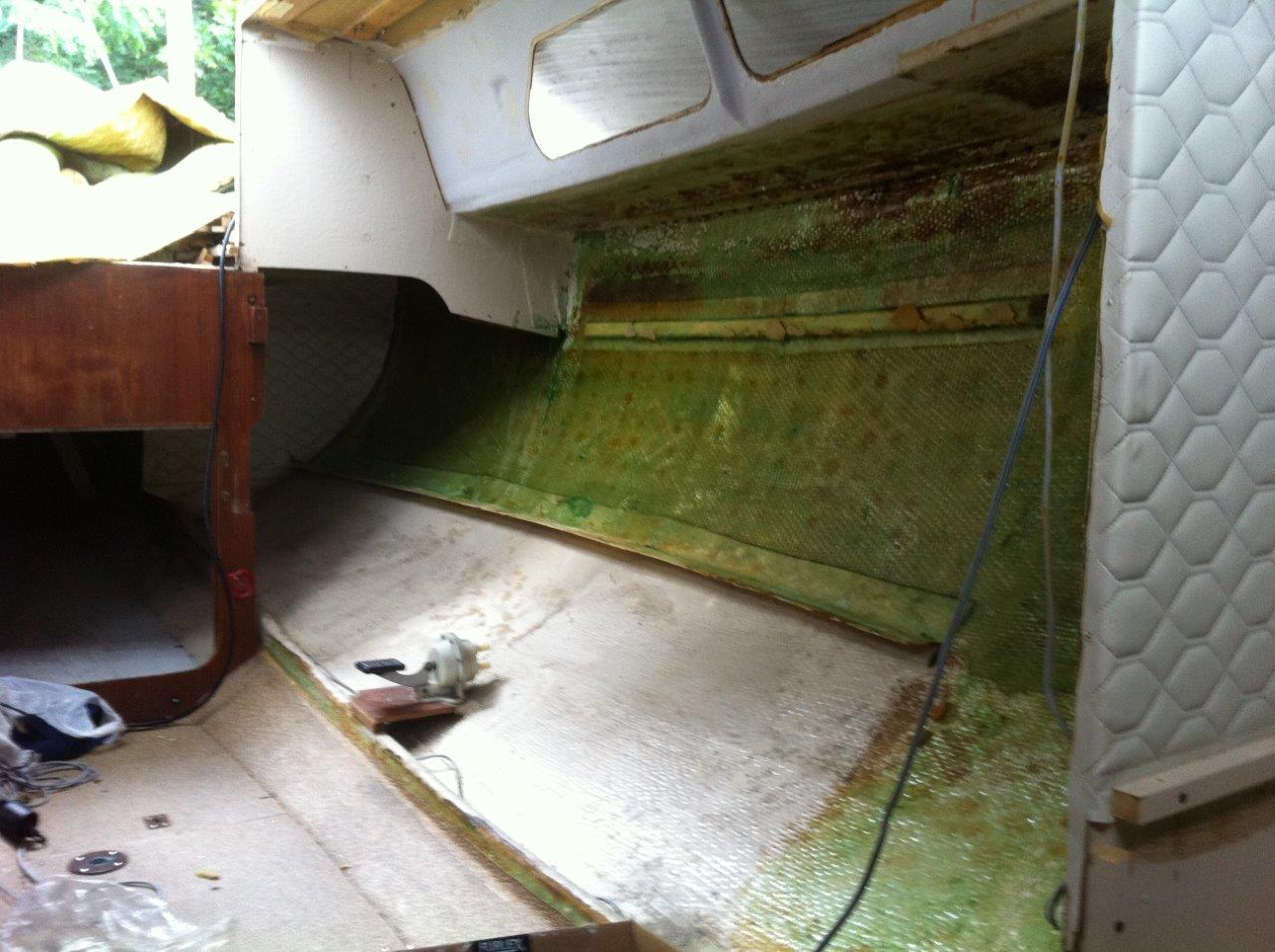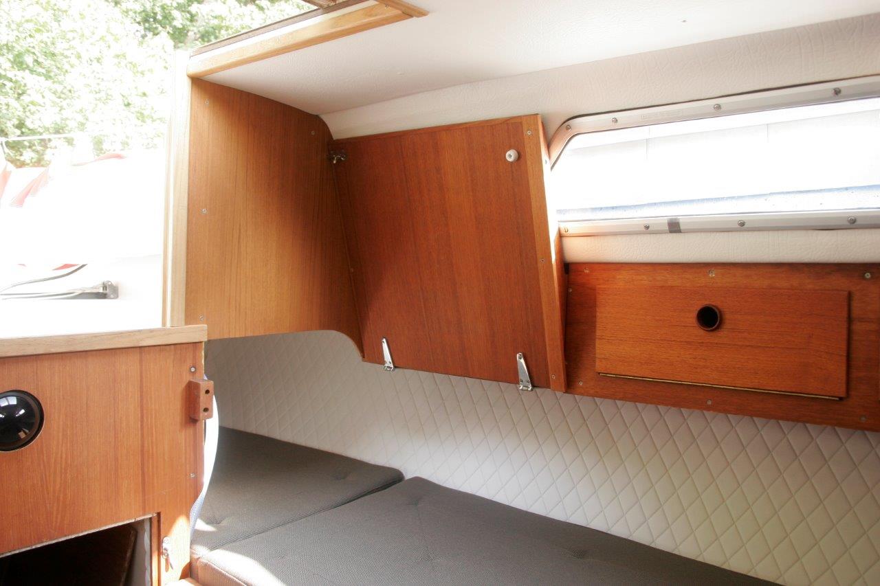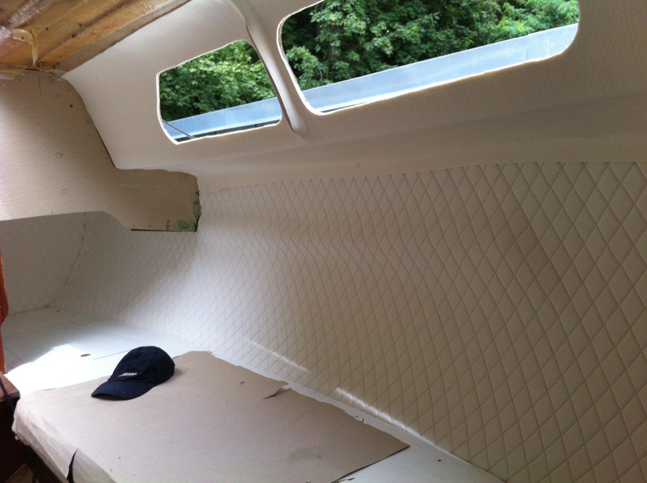 Unter anderem wurde das Freibord im aufwendigem Gel-Coat-Verfahren aufbereitet, eine Teak Scheuerleiste angefertigt und montiert, die gesamte Inneneinrichtung raus genommen und aufarbeitet und die Elektrik erneuert.