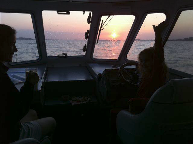 In the evening, our young shipmate was at the helm up the “Strelasund” to