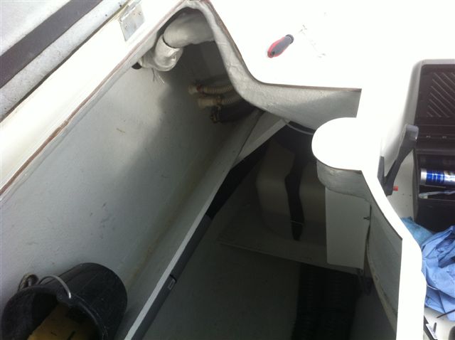 AirTop 2000ST platzsparend achter in der Backskiste einer SunOdyssey29 und schön aus dem Weg von Segelsäcken , Schlauchbooten etc.